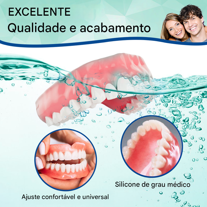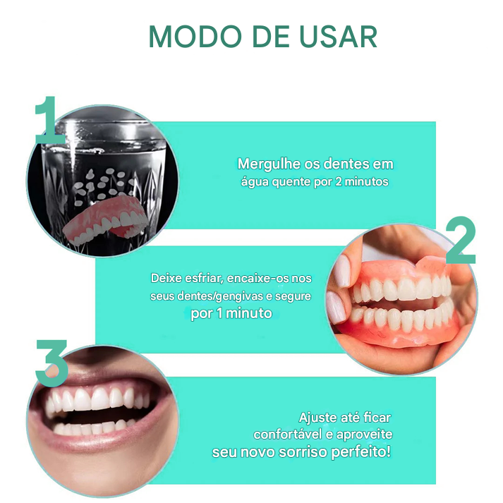 💡 Dica profissional: Para obter resultados ainda melhores, pratique falar e mastigar suavemente nos primeiros dias para se acostumar com sua nova prótese.