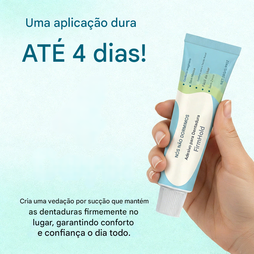 NESLEMY® FirmHold utiliza tecnologia avançada que é ativada com o calor suave da água morna ou da temperatura corporal natural. Uma vez aplicado, ele se molda perfeitamente aos contornos da gengiva e da prótese, selando microfissuras e formando uma fixação personalizada e acolchoada que dura dias, proporcionando conforto natural e confiável.